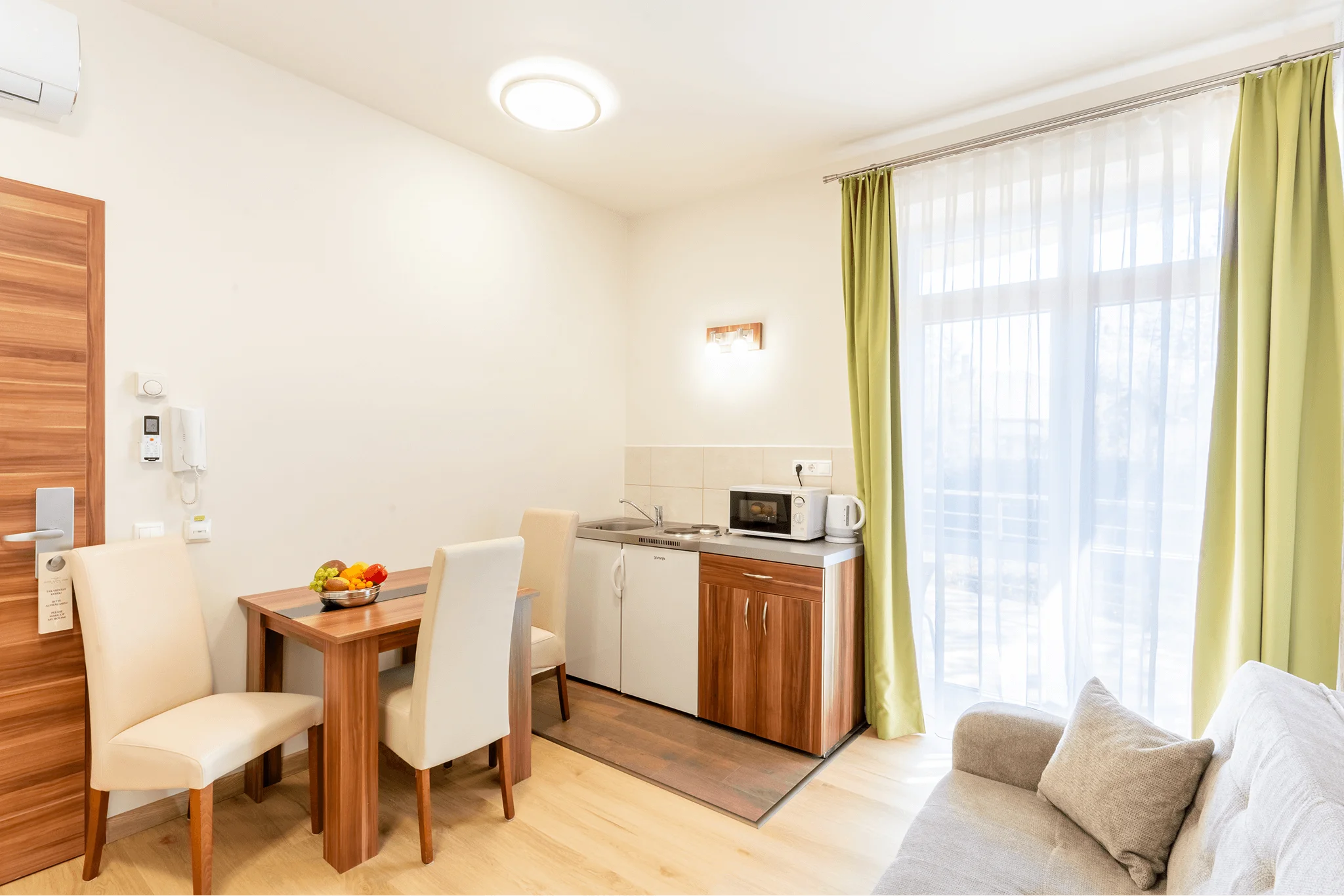 A generous buffet breakfast, convenient parking, and apartments equipped with kitchens await you in Mosonmagyaróvár, the capital of Szigetköz.